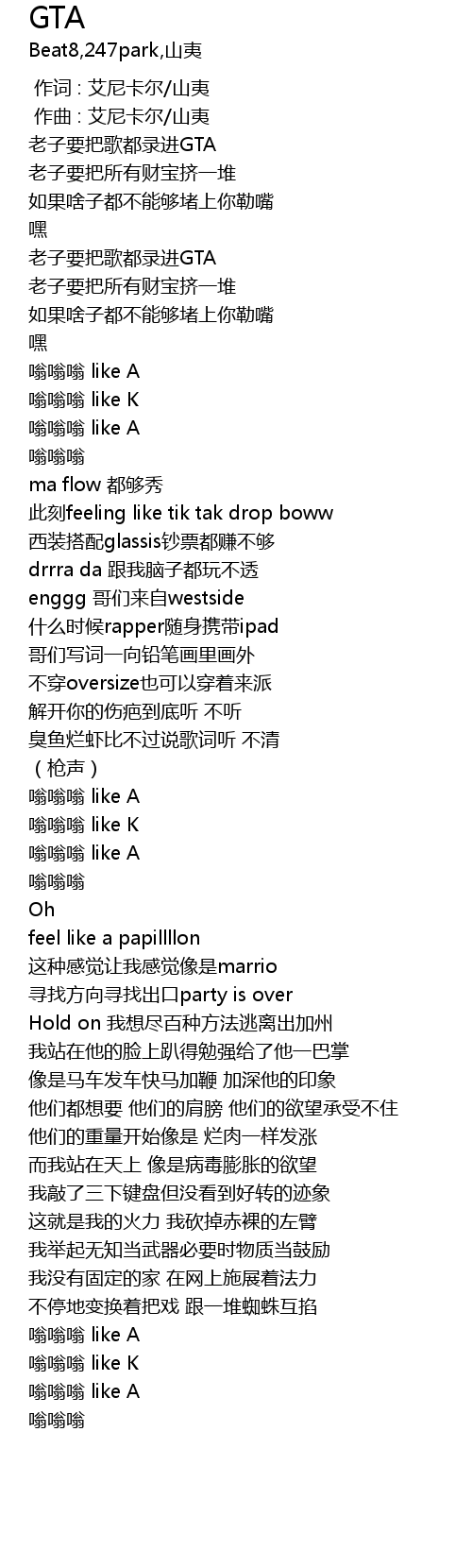 | [00:19.282] | lao zi yao ba ge dou lu jin GTA |
