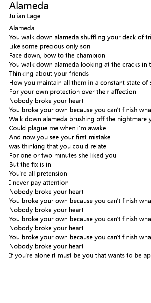 You walk down alameda looking at the cracks in the sidewalk |