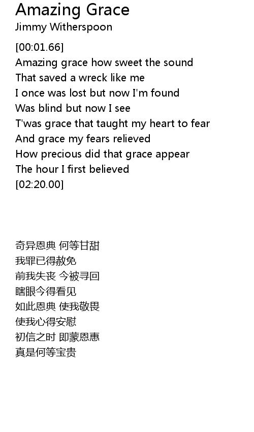 | [00:10.93] | Amazing grace how sweet the sound |