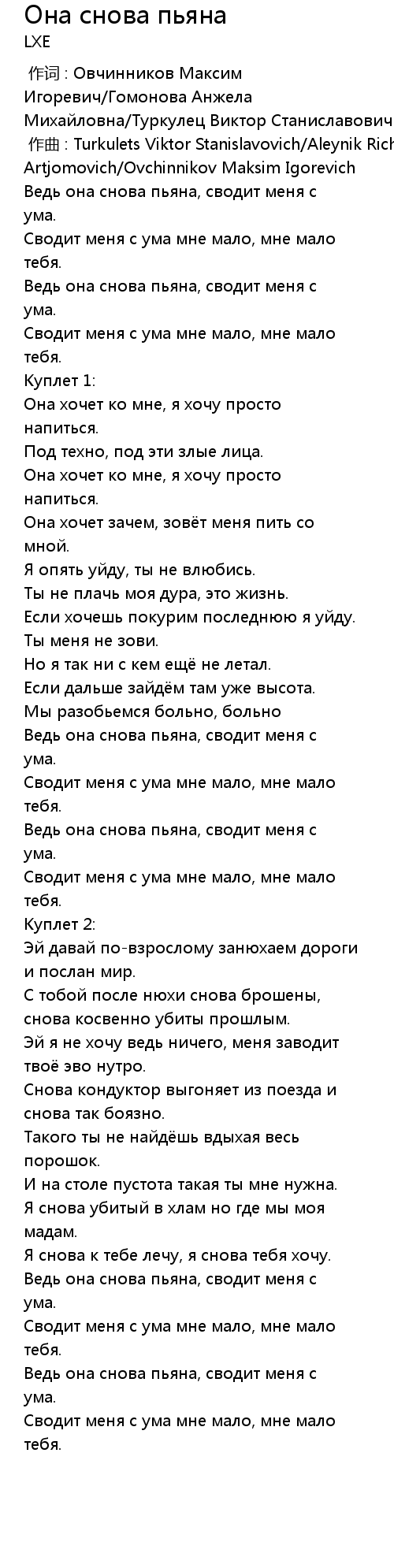 作词 : Овчинников Максим Игоревич/Гомонова Анжела Михайловна/Туркулец Виктор Станиславович |
