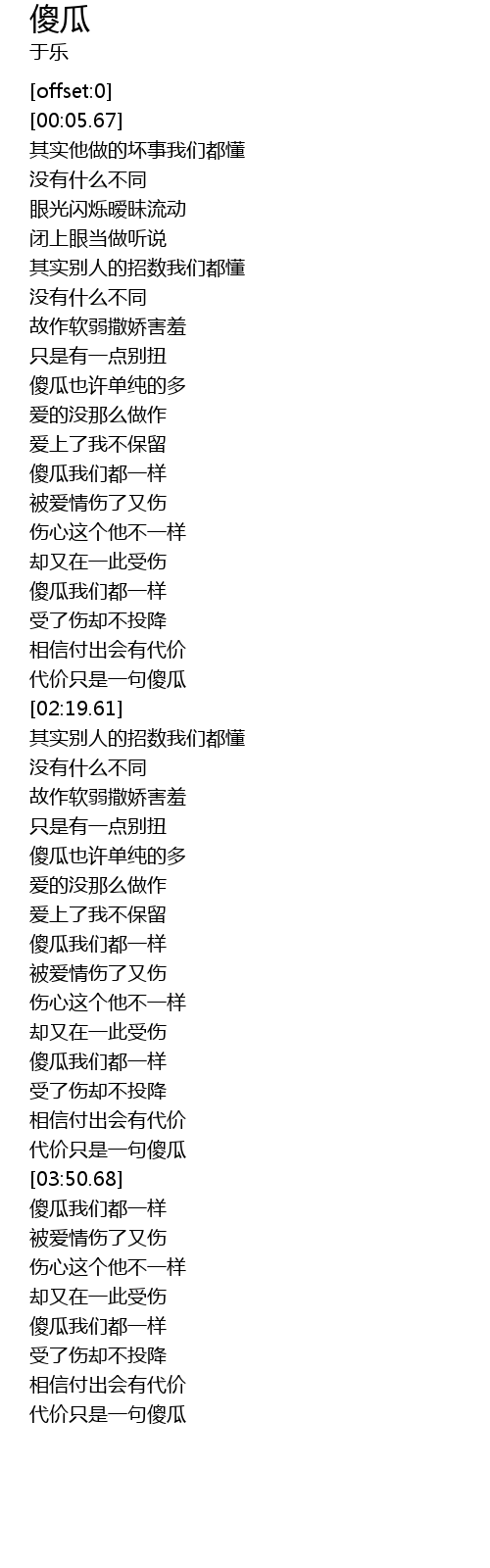 | [04:19.67] | shǎ guā wǒ men dōu yí yàng |