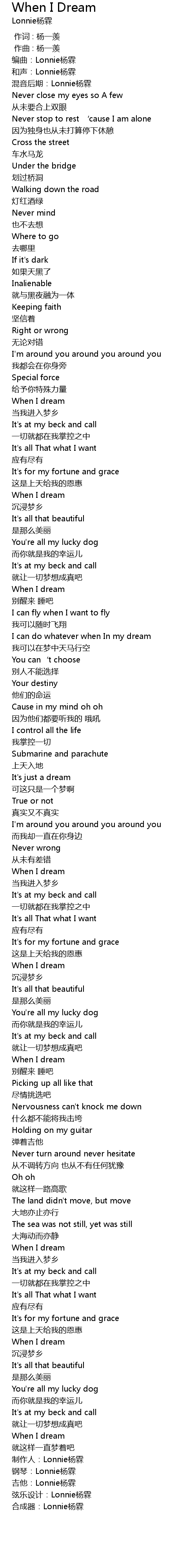 | [00:56.992] | dāng wǒ jìn rù mèng xiāng |