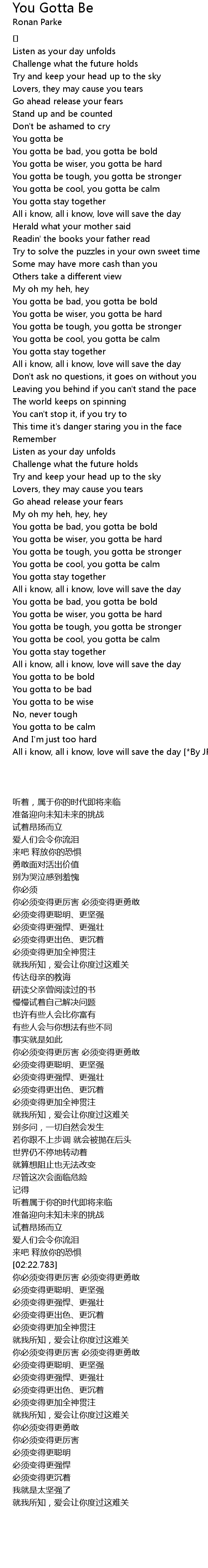 | 歌曲 | You Gotta Be |
