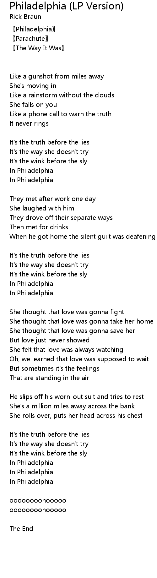 | 歌曲 | Philadelphia (LP Version) |