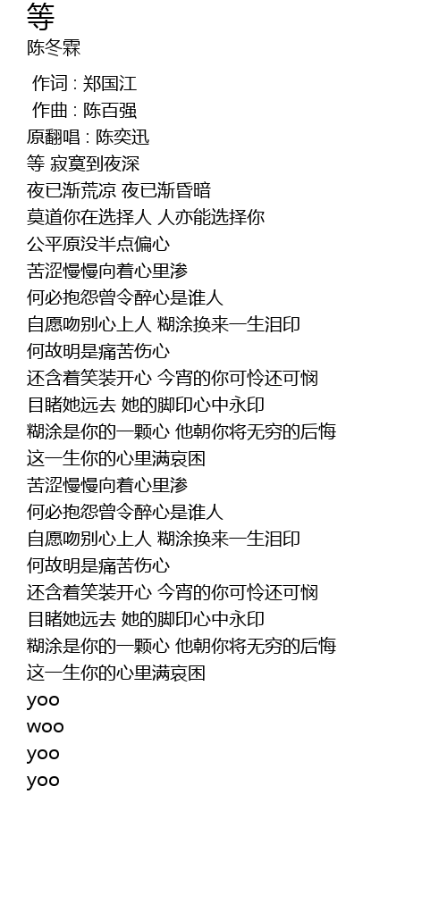 | [00:00.000] | 作词 : 郑国江 |