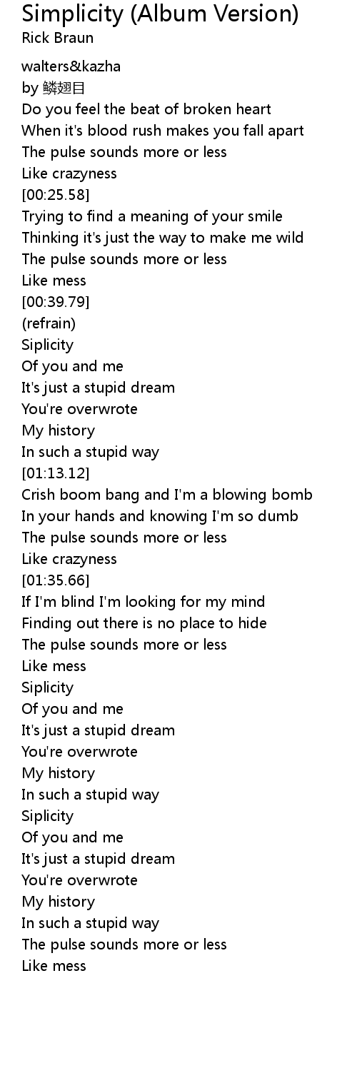 | [00:14.17] | When it' s blood rush makes you fall apart |