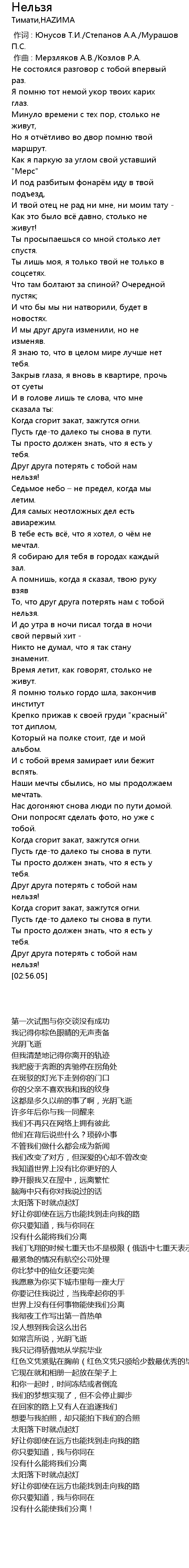 | [00:00.000] | 作词 : Юнусов Т.И./Степанов А.А./Мурашов П.С. |