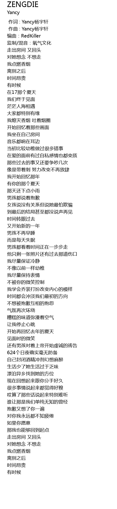 | [00:00.000] | 作词 : Yancy杨宇轩 |