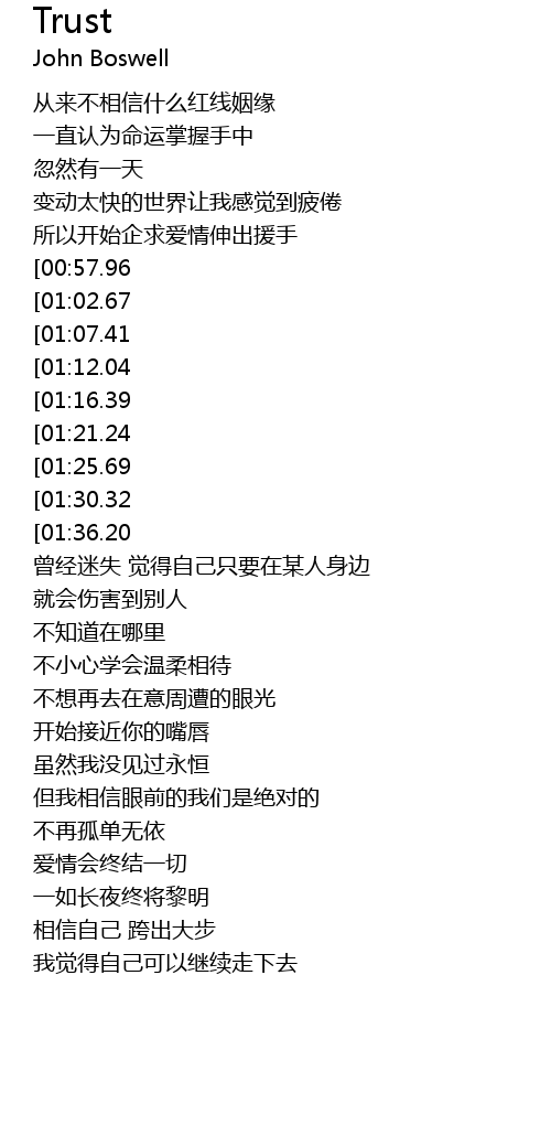 | [01:56.01] | 曾经迷失 觉得自己只要在某人身边 |