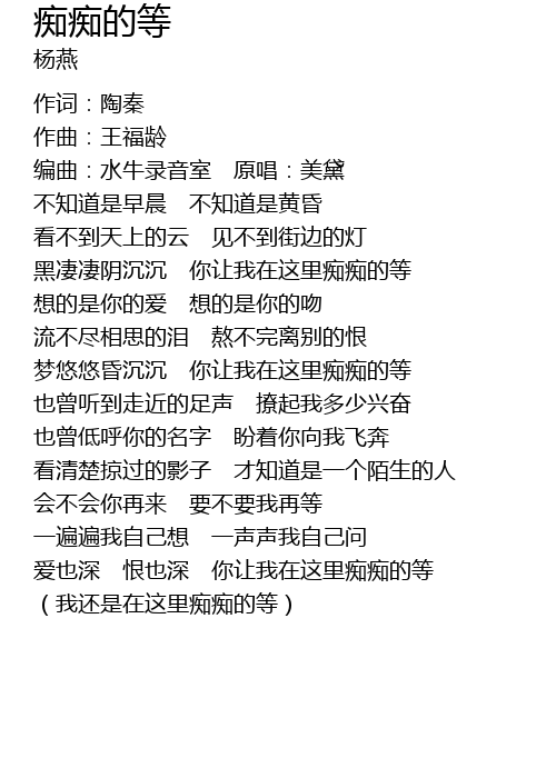 | 爱也深 恨也深 你让我在这里痴痴的等 | |