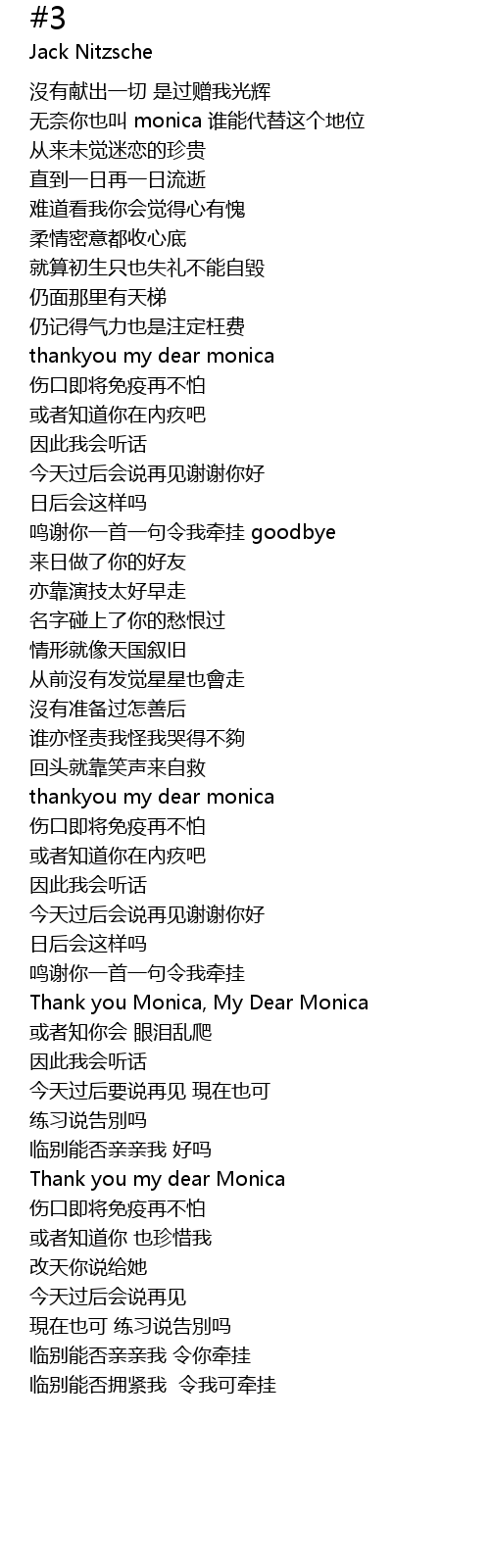 | 鸣谢你一首一句令我牵挂 goodbye | |