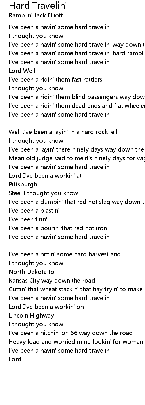 I've been a havin' some hard travelin' hard ramblin' hard gamblin' |