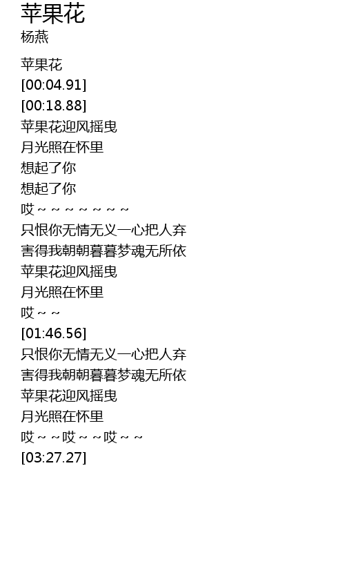 | [00:21.17] | píng guǒ huā yíng fēng yáo yè |