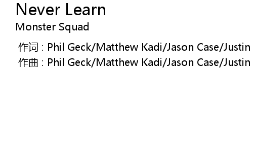 | [00:00.000] | 作词 : Phil Geck/Matthew Kadi/Jason Case/Justin Peach/Chris Chapel |