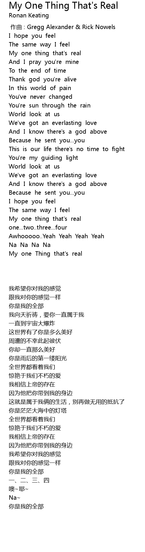 | [03:08.289] | My one Thing that' s real |