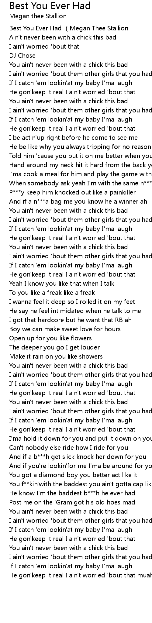 | [00:00.370] | Best You Ever Had Megan Thee Stallion |