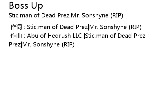 | [00:00.000] | zuo qu : Abu of Hedrush LLC Stic. man of Dead Prez Stic. man of Dead Prez Mr. Sonshyne RIP |