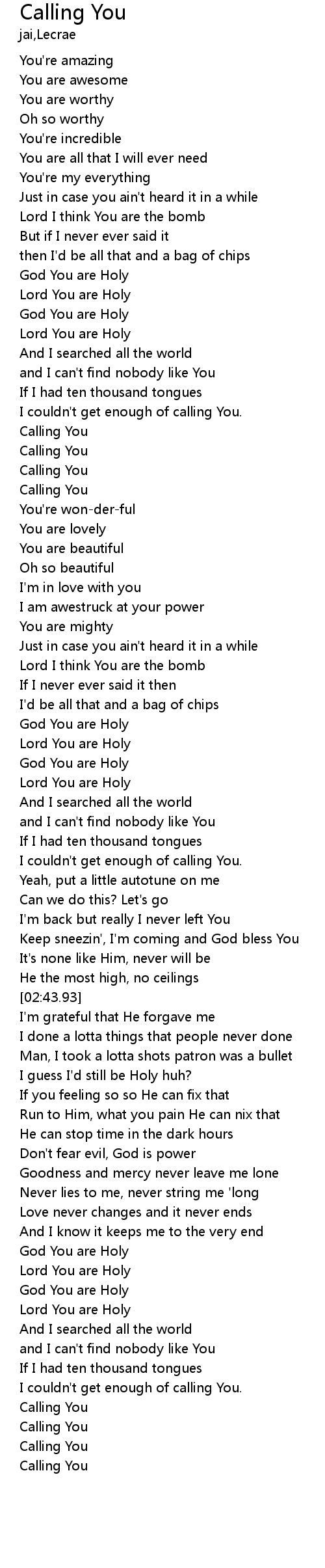 | [03:34.85] | I couldn't get enough of calling You. |