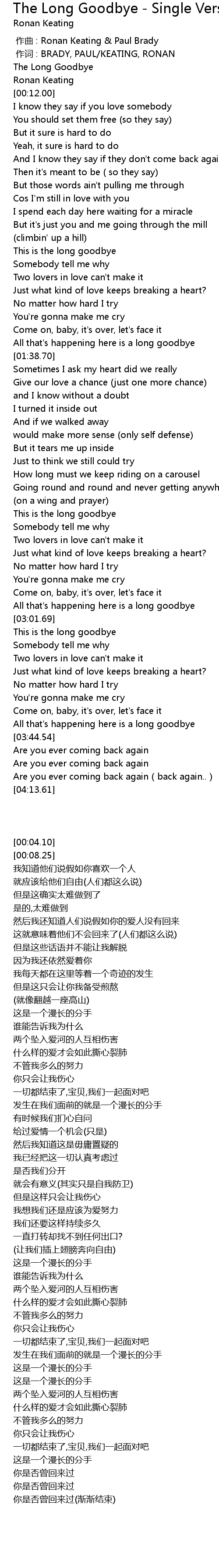 | [00:00.00] | zuo qu : Ronan Keating Paul Brady |