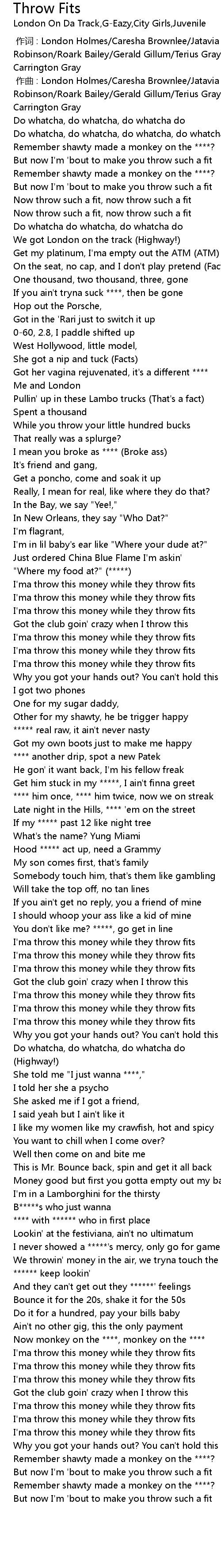| [02:59.13] | I'ma throw this money while they throw fits |