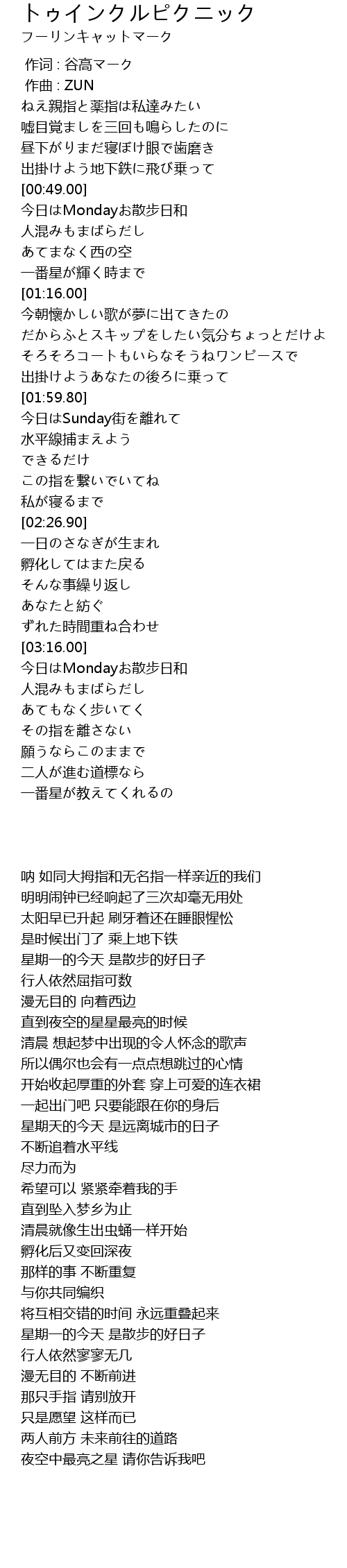 | [00:14.30] | ねえ親指と薬指は私達みたい |