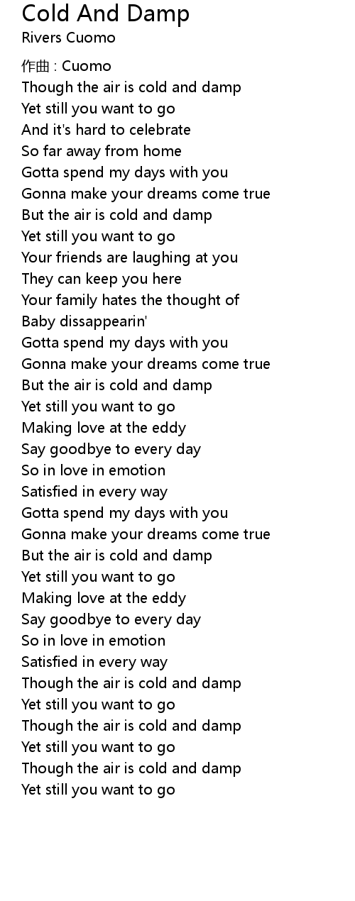 | 歌曲 | Cold And Damp |