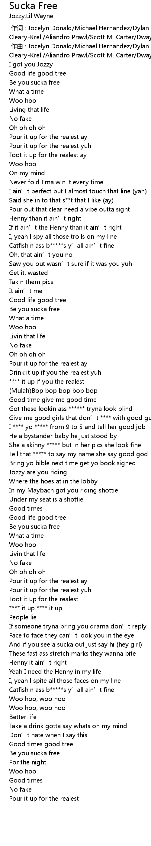 | [00:00.000] | 作词 : Jocelyn Donald/Michael Hernandez/Dylan Cleary-Krell/Aliandro Prawl/Scott M. Carter/Dwayne Carter Jr./Jillyan Moor |