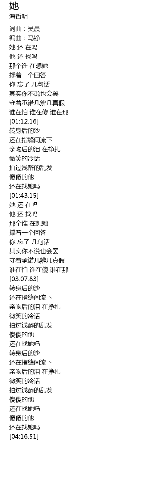 | [03:00.00] | shui zai pa shui zai sha shui zai na |