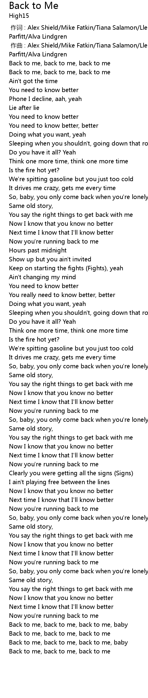 | [03:14.26] | Back to me, back to me, back to me, baby |