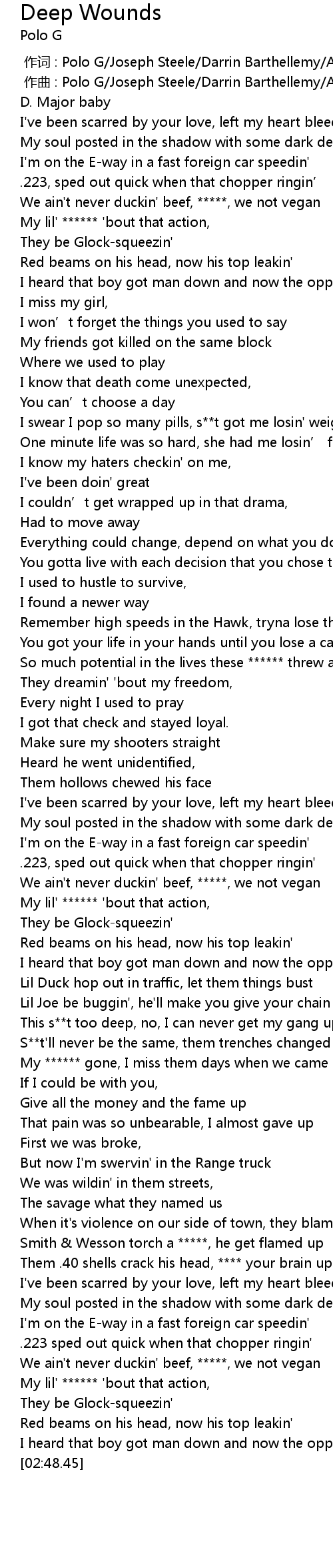 | [00:00.000] | 作词 : Polo G/Joseph Steele/Darrin Barthellemy/Angelo Callari |