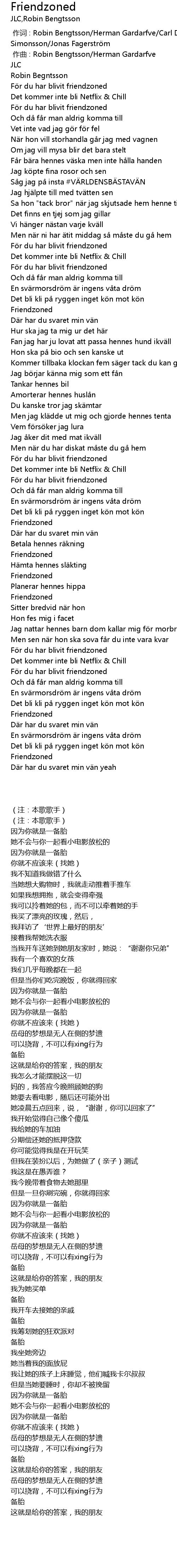 | [00:16.58] | För du har blivit friendzoned |
