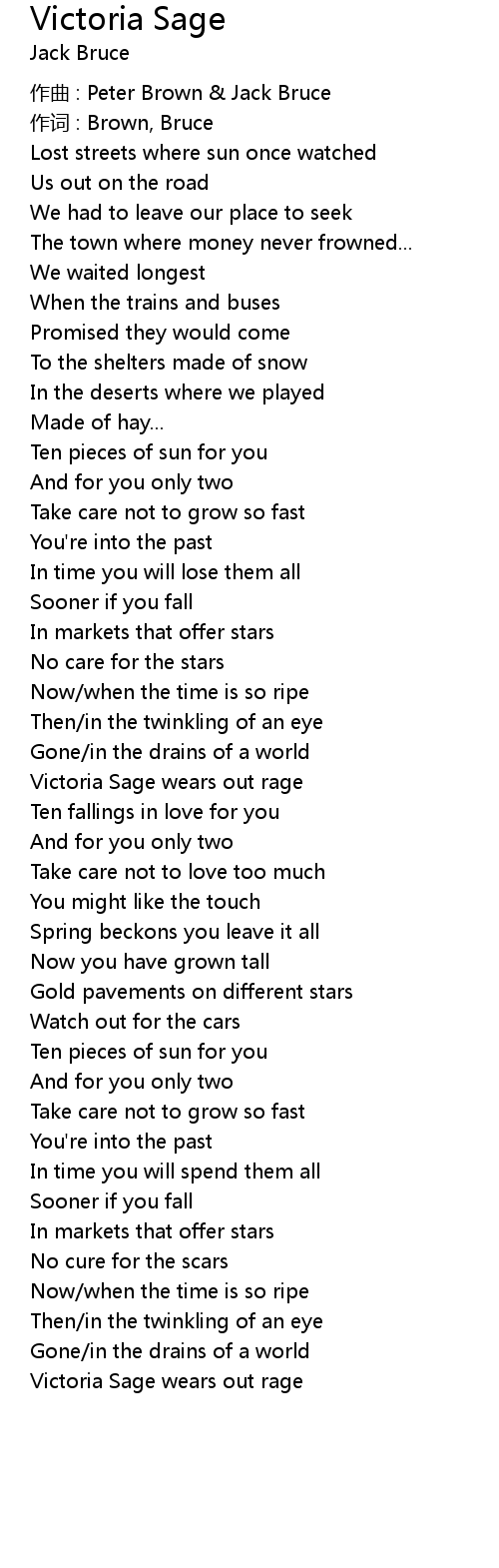 | 歌曲 | Victoria Sage |