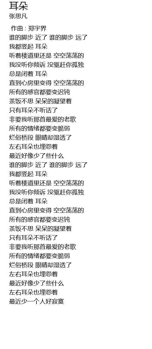 | [00:49.324] | zhi you er duo bu ting hua le |