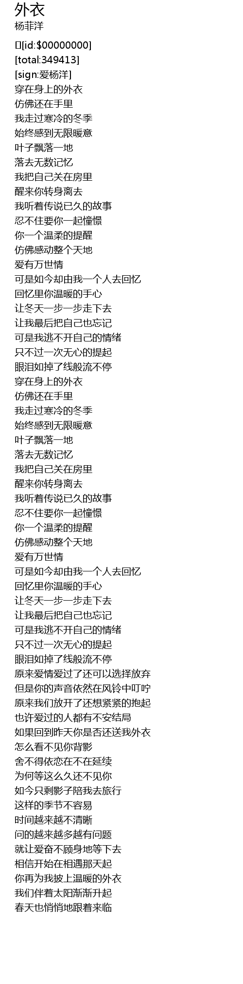 | [04:22.753] | 如果回到昨天你是否还送我外衣 |