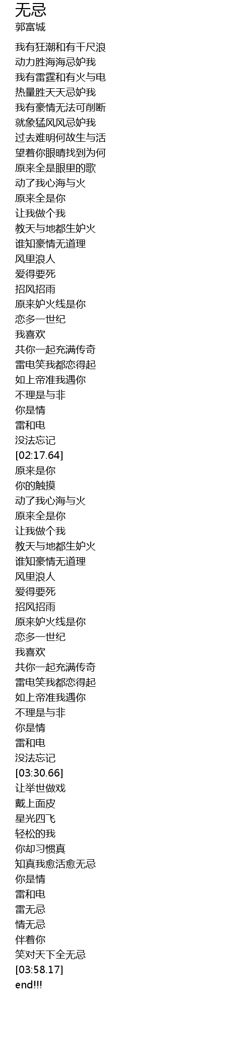 | [03:48.90] | 情无忌 |