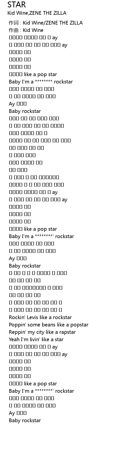| [01:17.347] | Baby I'm a ********' rockstar |