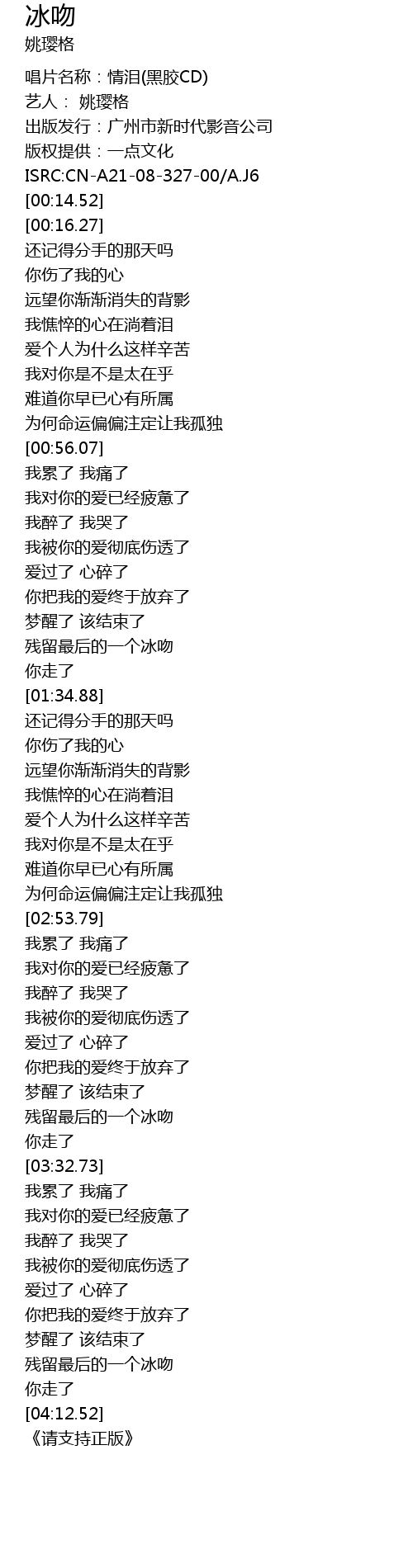 | [00:02.65] | 唱片名称:情泪(黑胶CD) |