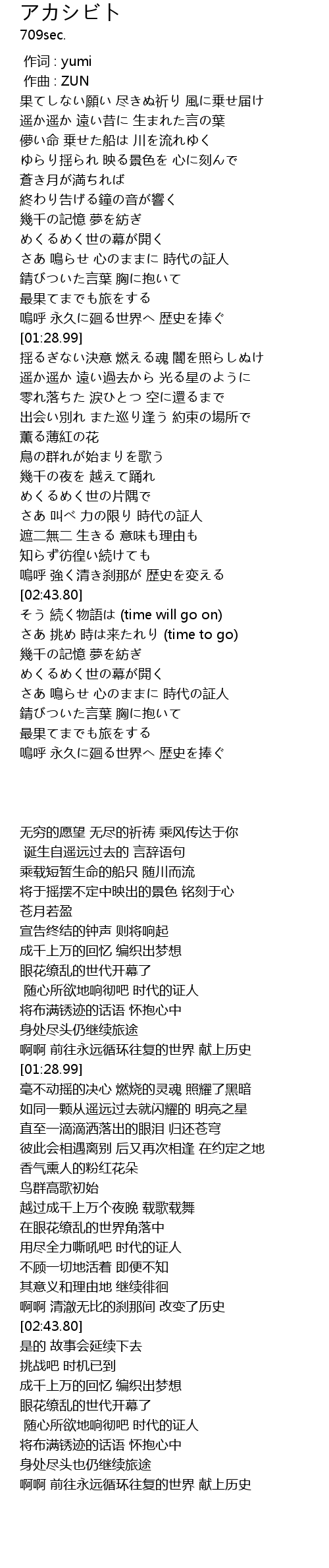 | [01:22.03] | 嗚呼 永久に廻る世界へ 歴史を捧ぐ |