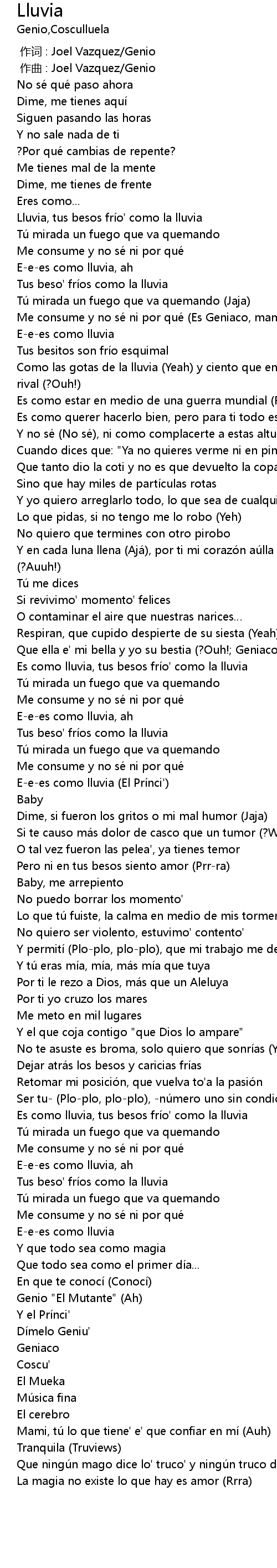 | [00:00.000] | 作词 : Joel Vazquez/Genio |