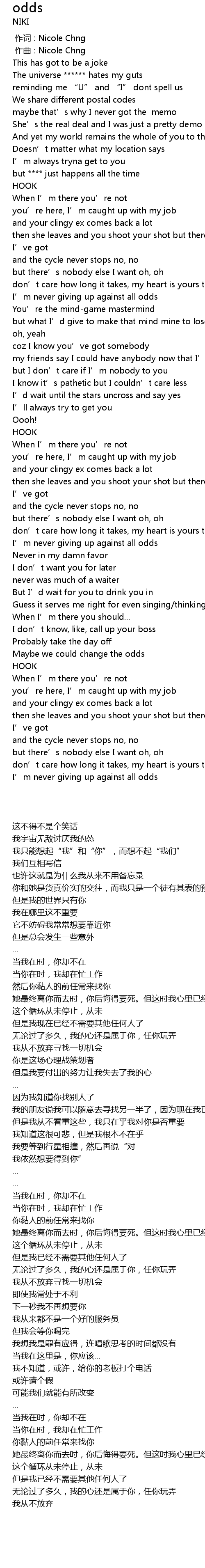 | 歌曲 | odds |