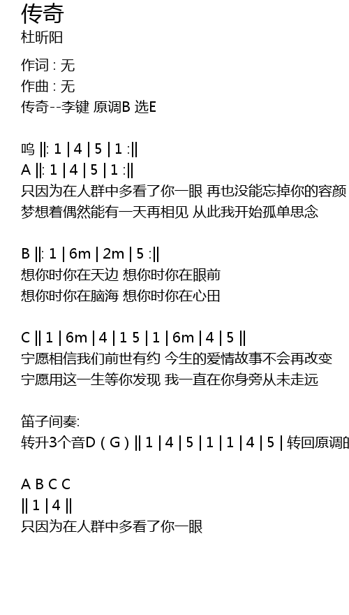 | 传奇--李键 原调B 选E | |