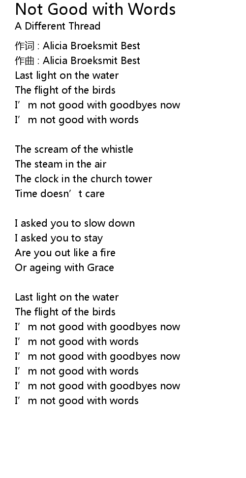 | 歌曲 | Not Good with Words |