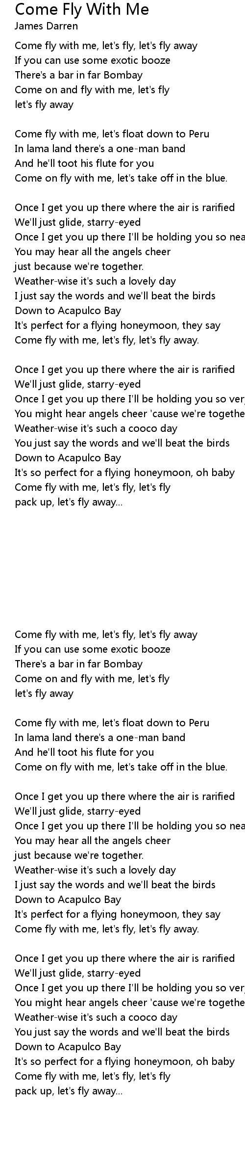 Come fly with me, let's fly, let's fly away. |