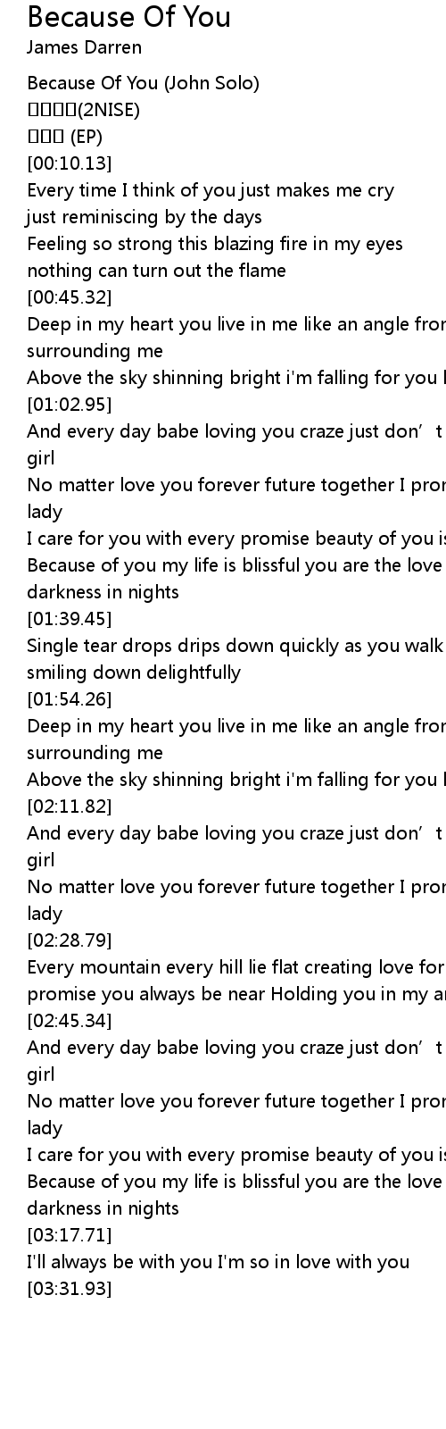 | [03:08.70] | Because of you my life is blissful you are the love that lights darkness in nights |