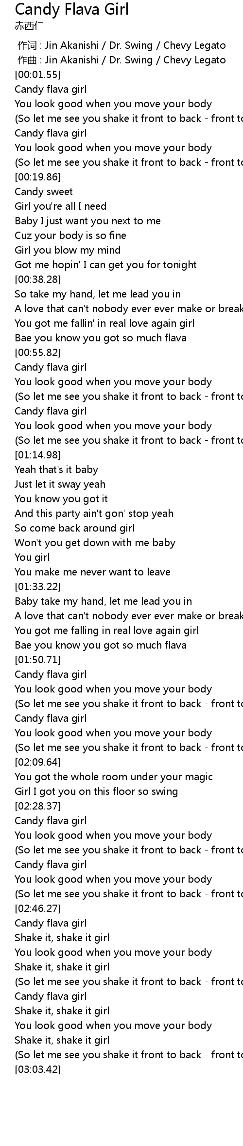 | [02:56.06] | Candy flava girl |