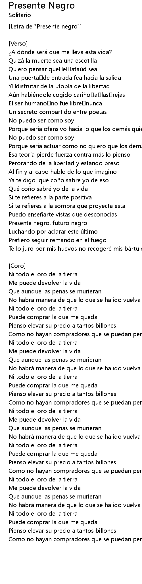 | Letra de " Presente negro" | |