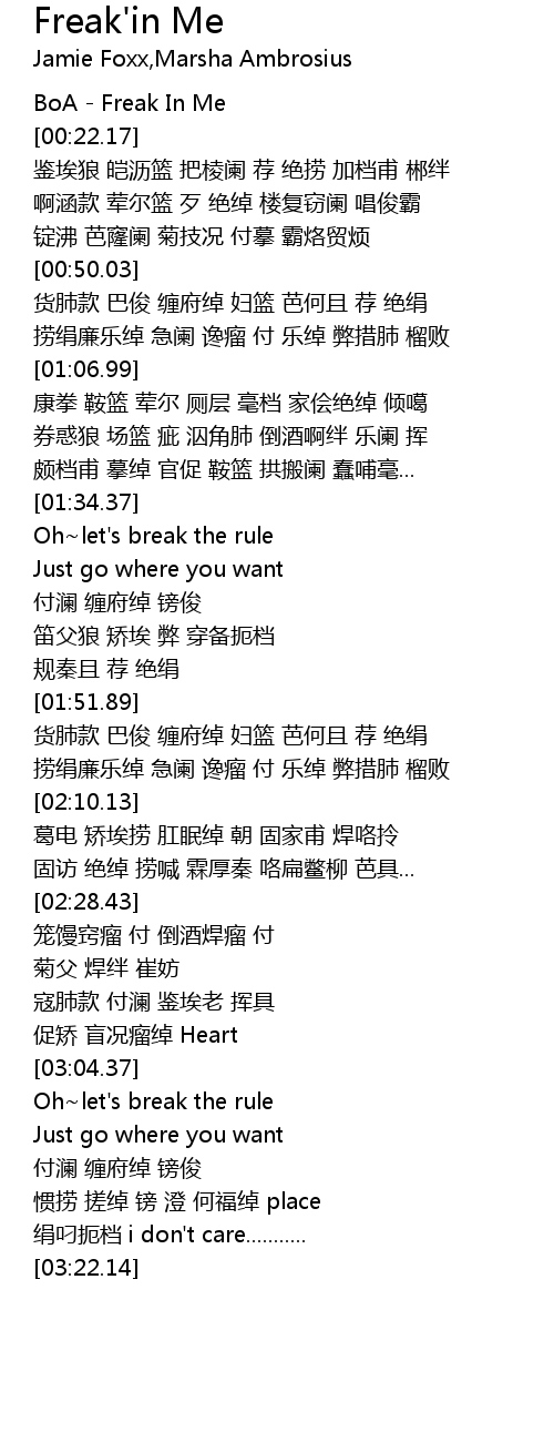 | [01:53.82] | 货肺款 巴俊 缠府绰 妇篮 芭何且 荐 绝绢 |