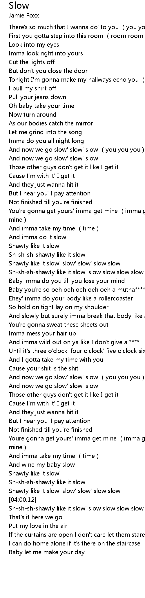| [04:00.76] | Sh-sh-sh-shawty like it slow' slow slow slow slow |