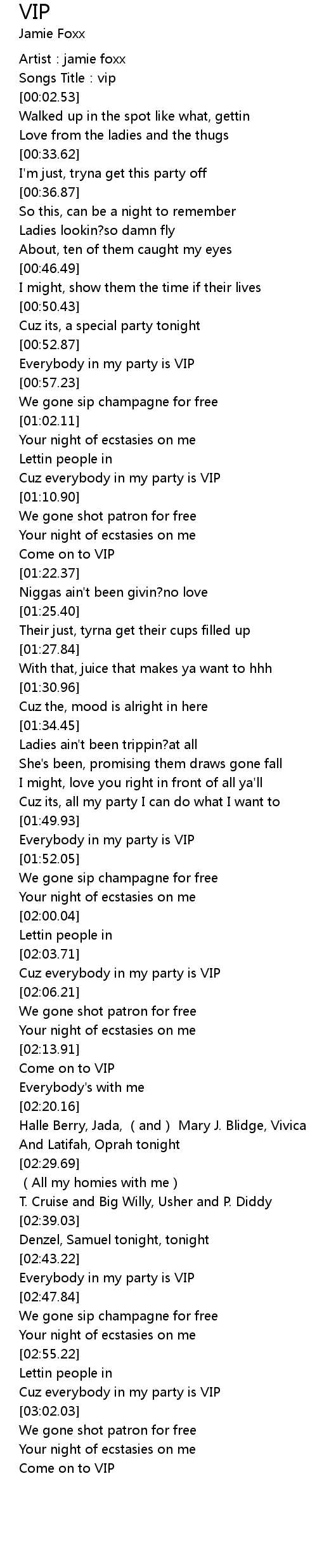 | [02:45.16] | Everybody in my party is VIP |