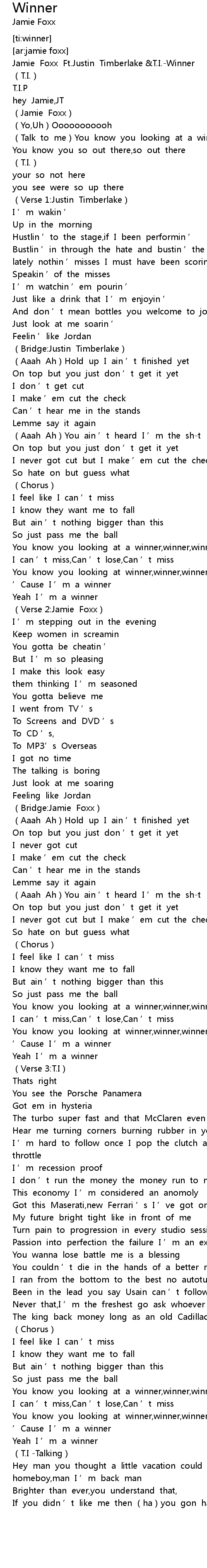 | [00:00.12] | Jamie Foxx Ft. Justin Timberlake T. I. Winner |